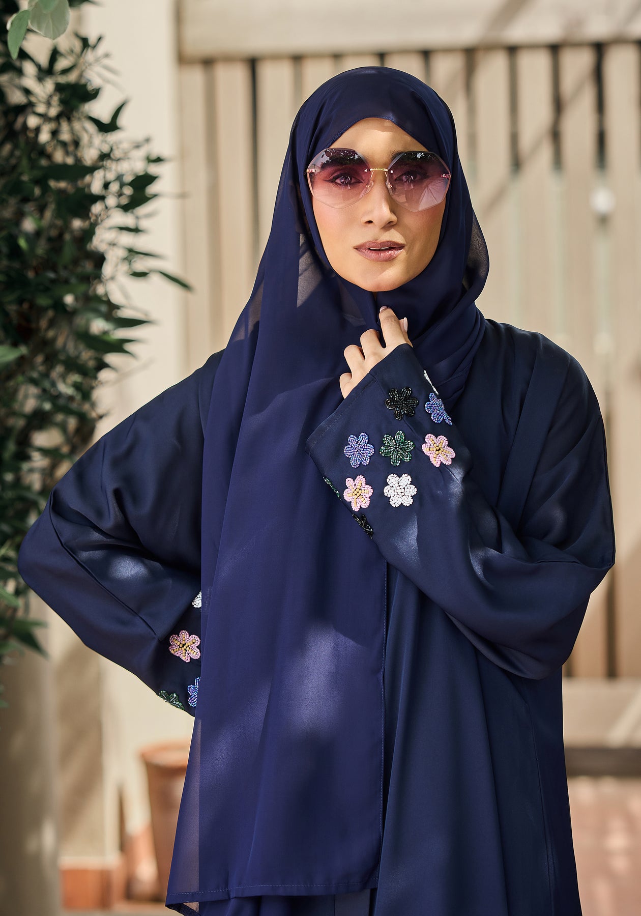 Crafted from soft Nida fabric, the Blue Spring Abaya offers both comfort and elegance. Its refined handwork detailing on the sleeves adds a subtle yet sophisticated touch, perfect for formal occasions or everyday wear. The deep blue hue complements various styles, making it a versatile addition to your wardrobe.