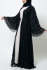 Stay ahead of the fashion curve with our stylish frayed sleeve linen look abaya. Designed to make a statement, this piece boasts delicate white embroidered flowers along the cuffs and down the length of the abaya, creating a breathtaking contrast against the oatmeal fabric. Embrace the trend while exuding elegance and sophistication with this unique addition to your wardrobe. Elevate your style and stand out from the crowd with our beautiful frayed sleeve abaya.