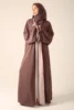 Experience unmatched versatility with our reversible abaya, designed to give you two stunning looks in one. Featuring one side in soft beige and the other in rich mocha, this abaya offers effortless elegance no matter how you wear it. Crafted from luxurious Korean Nida fabric, its frayed lapels and cuffs add a contemporary touch to a classic design. Perfect for any occasion, this abaya is a must-have piece that doubles your style options with ease. Also available in green and soft grey.